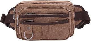 Sac Banane Moderne Bretelles Réglables pour Homme Garçon Sac de Loisirs/Sport/Voyage en Toile avec Zippe Sac Multi-fonctions Multi-poches - Café