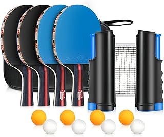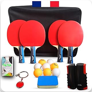 FAKAIS Set Raquette de ping Pong Professionnel, 4 Raquettes de Tennis de Table-8 balles-Filet ping Pong portatif pour Table-Sac - Eponge Raquette. Jouez en Famille Entre Amis ou en compétition