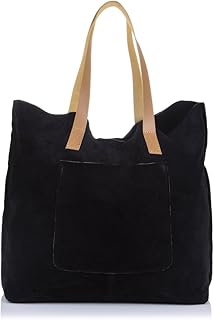 Bolso Shopping Bag De Mujer Piel Auténtica, Acabado Gamuza Sac bandoulière, 50 cm, Noir (Negro)
