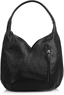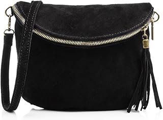 Bolso De Mujer Piel Auténtica, Acabado Gamuza Sac bandoulière, 24 cm, Noir (Negro)