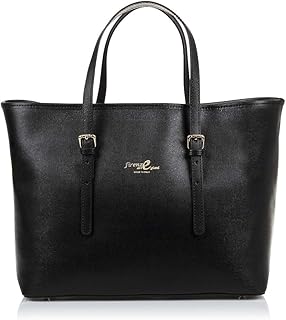 Bolso Tote De Mujer Piel Auténtica, Acabado Saffiano Sac bandoulière, 38 cm, Noir (Negro)