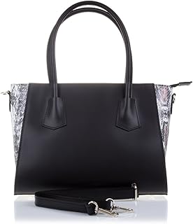 Bolso Tote De Mujer Piel Auténtica, Grabado Serpiente Sac bandoulière, 32 cm, Noir (Negro)