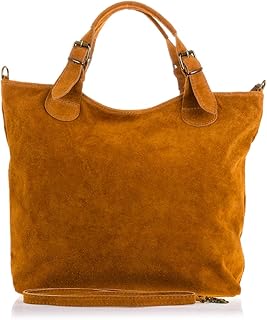 Bolso Shopping Bag De Mujer Piel Auténtica, Acabado Gamuza Sac bandoulière, 40 cm, Marron (Cuero)