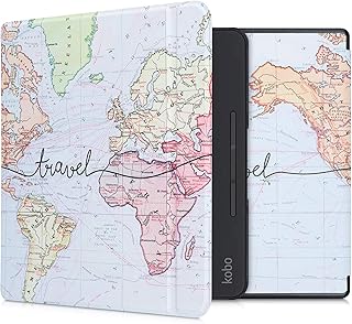 kwmobile Étui liseuse Compatible avec Kobo Forma - Housse avec Rabat magnétique en Simili Cuir - Carte du Monde Voyage Noir-Multicolore