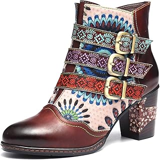 Bottines Cuir Talons Femmes, Bottes en Cuir Chaussures de Ville Hiver à Talons Hauts Confortable Boots Montantes Semelles Conforts Boucle Originale