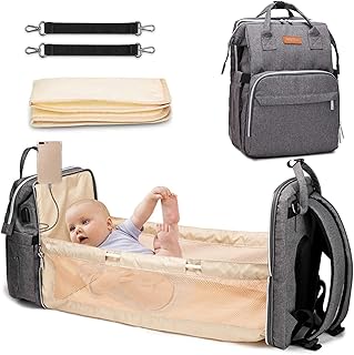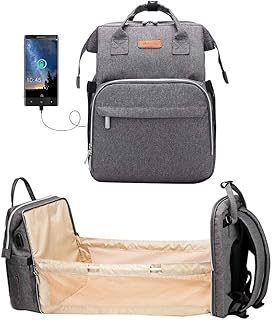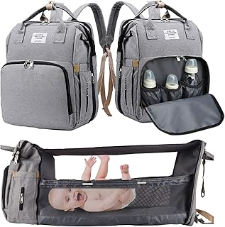 Sac à dos à langer pour bébé avec lit pliable, HebyTinco sac à dos de voyage multifonction, Sac à Langer pour Bébé, Lit À Dos Multifonctionnel De Grande Capacité (gris)