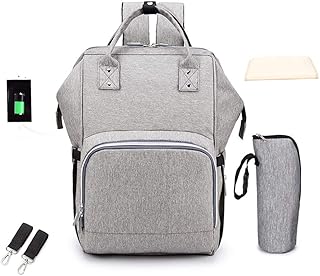 Sac à dos à langer pour bébé avec port de charge USB, sac isotherme, matelas à langer, sangles de poussette, grande capacité, sac à langer étanche multifonction, sac à dos de voyage (gris)
