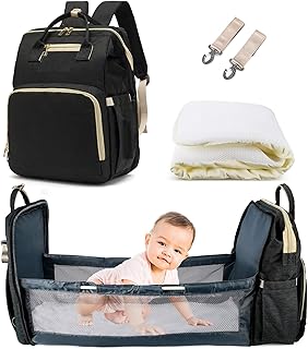 AmWile 3 en 1 sac à dos de sac à langer, sac à langer de voyage imperméable de grande capacité, table à langer pliable multifonctionnelle pour lit de bébé (noir)