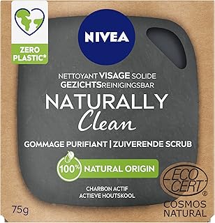 NIVEA NATURALLY Clean Nettoyant Visage Solide Gommage Purifiant (1 x 75 g), Soin visage exfoliant sans savon, Soin solide au PH neutre pour la peau